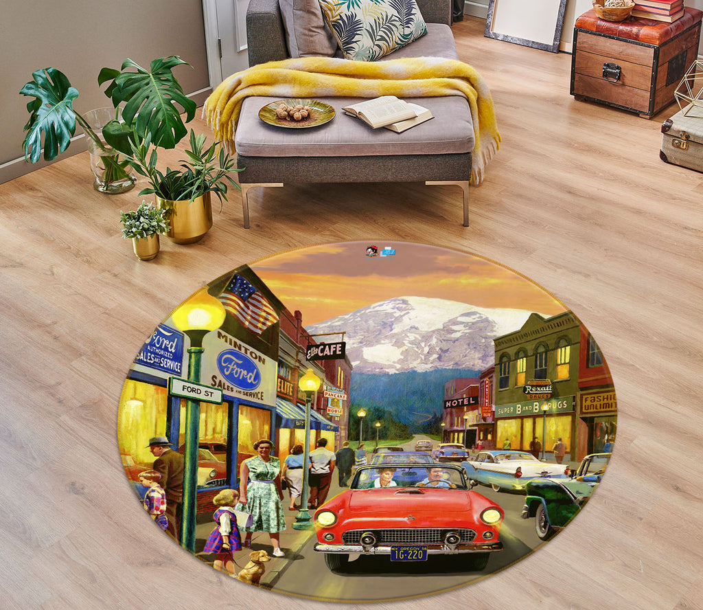 3D Street Red Car 070 Kevin Walsh Rug Round Non Slip Rug Mat Amy