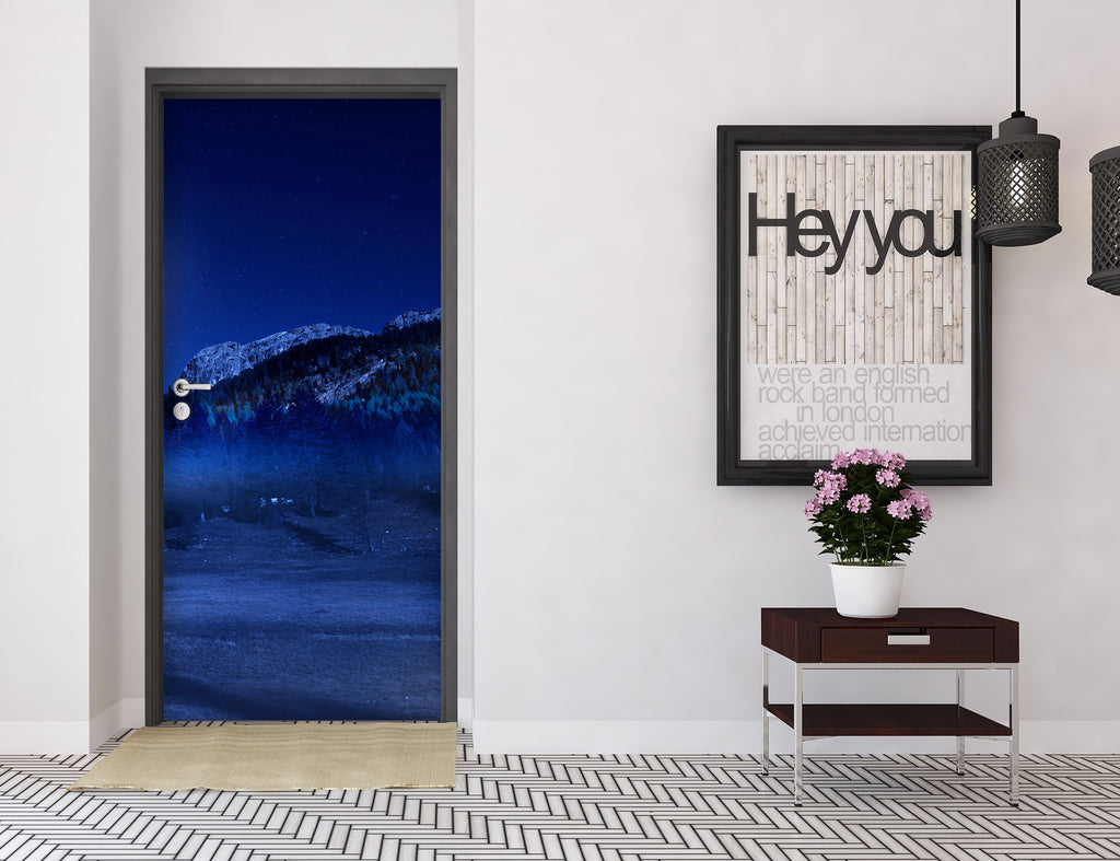 3D Woods Snow Mountain Night 122130 Marco Carmassi Door Mural Sinsin