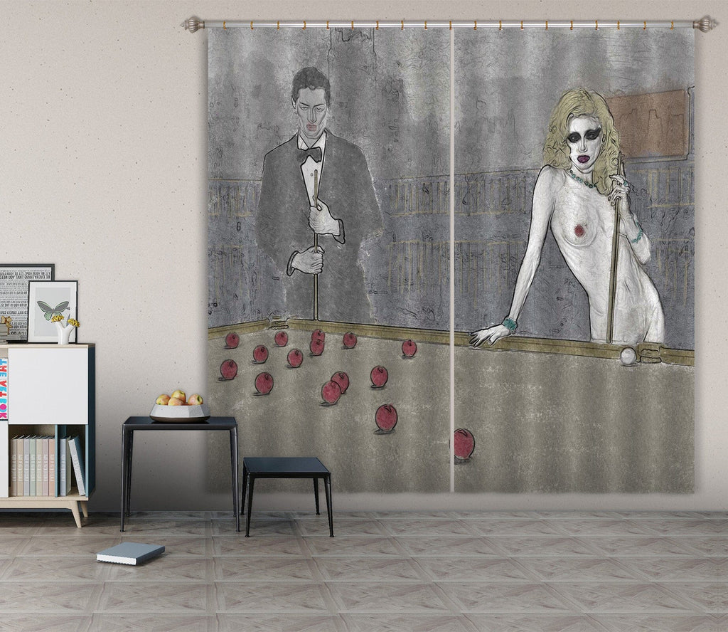 3D Red Billiard 046 Marco Cavazzana Curtain Curtains Drapes