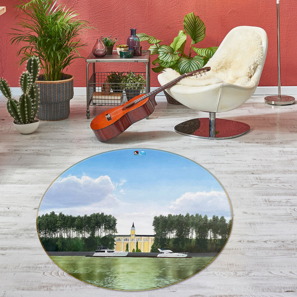 3D Lake Tree Building 9730 Marina Zotova Rug Round Non Slip Rug Mat Sinsin