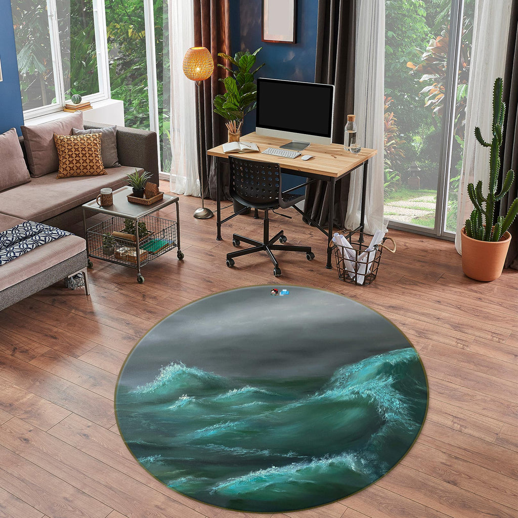 3D Waves 9746 Marina Zotova Rug Round Non Slip Rug Mat Sinsin