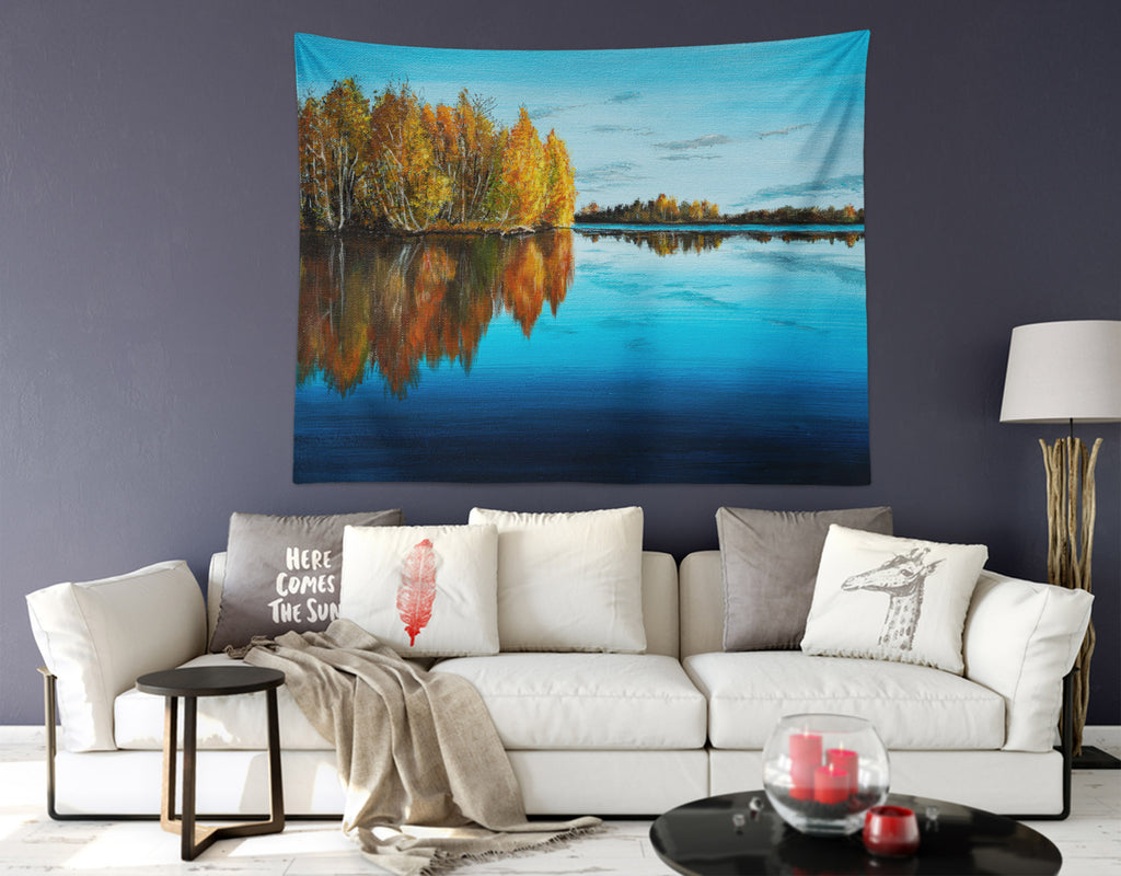 3D Blue Lake Trees 559 Marina Zotova Tapestry Hanging Cloth Hang Amy