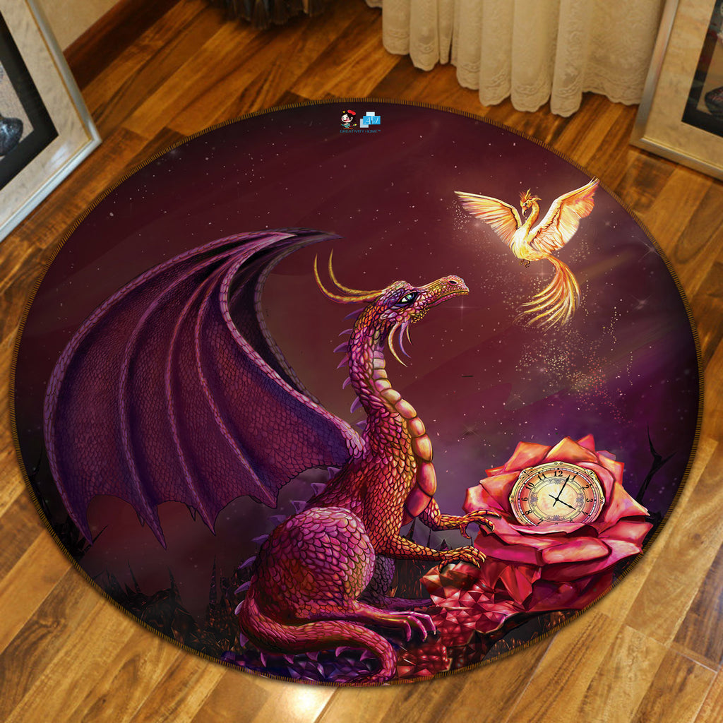 3D Crimson Clock Dinosaur 83176 Rose Catherine Khan Rug Round Non Slip Rug Mat Sinsin