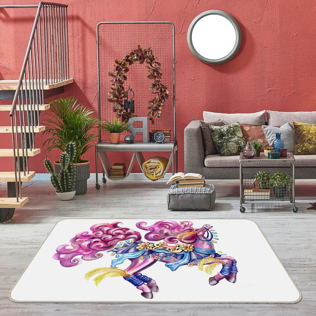 3D Curly Unicorn 3011 Rose Catherine Khan Rug Non Slip Rug Mat