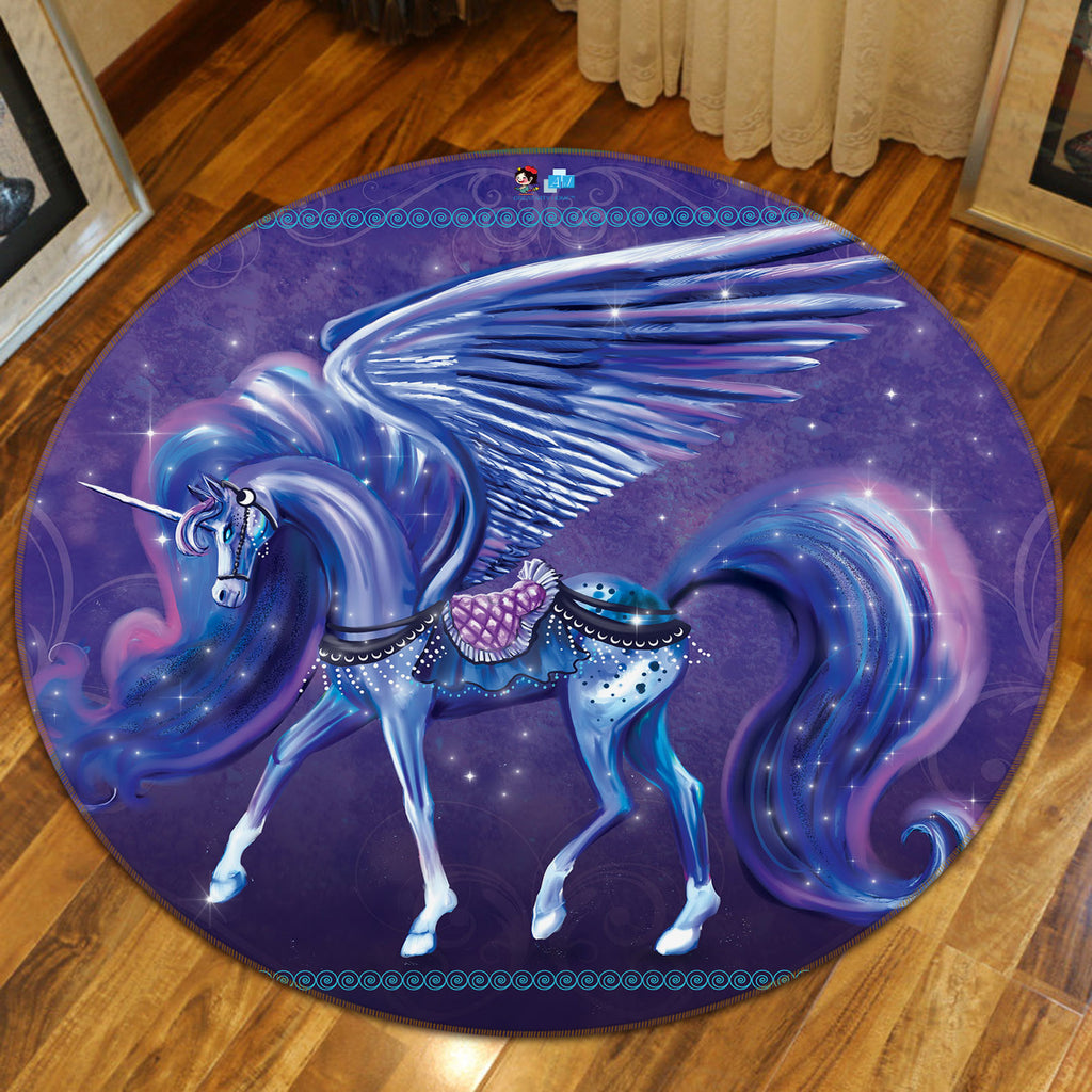 3D Purple Blue Unicorn 83169 Rose Catherine Khan Rug Round Non Slip Rug Mat Sinsin