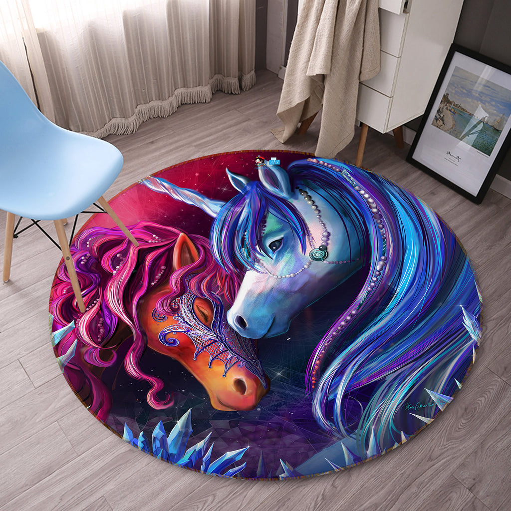3D Red Blue Unicorn 83156 Rose Catherine Khan Rug Round Non Slip Rug Mat Sinsin