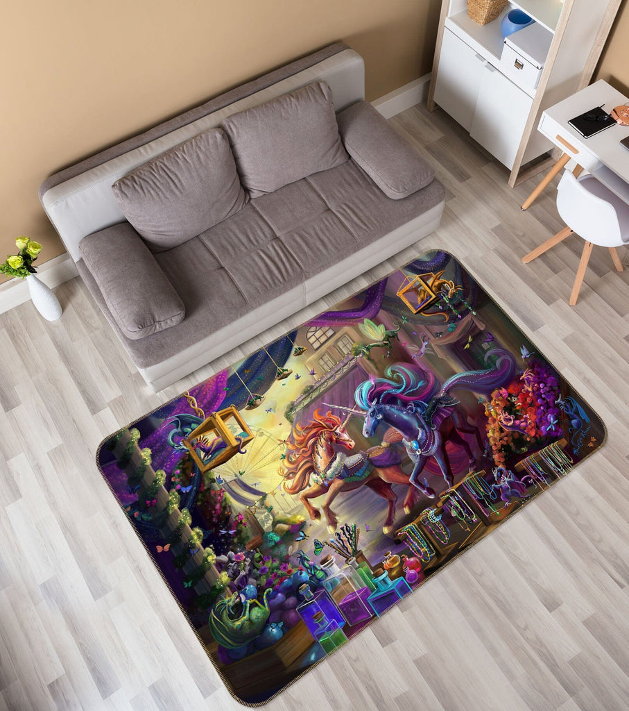 3D Two Unicorns 3022 Rose Catherine Khan Rug Non Slip Rug Mat