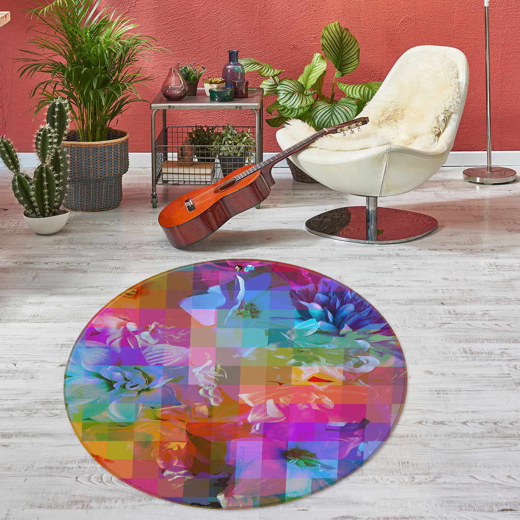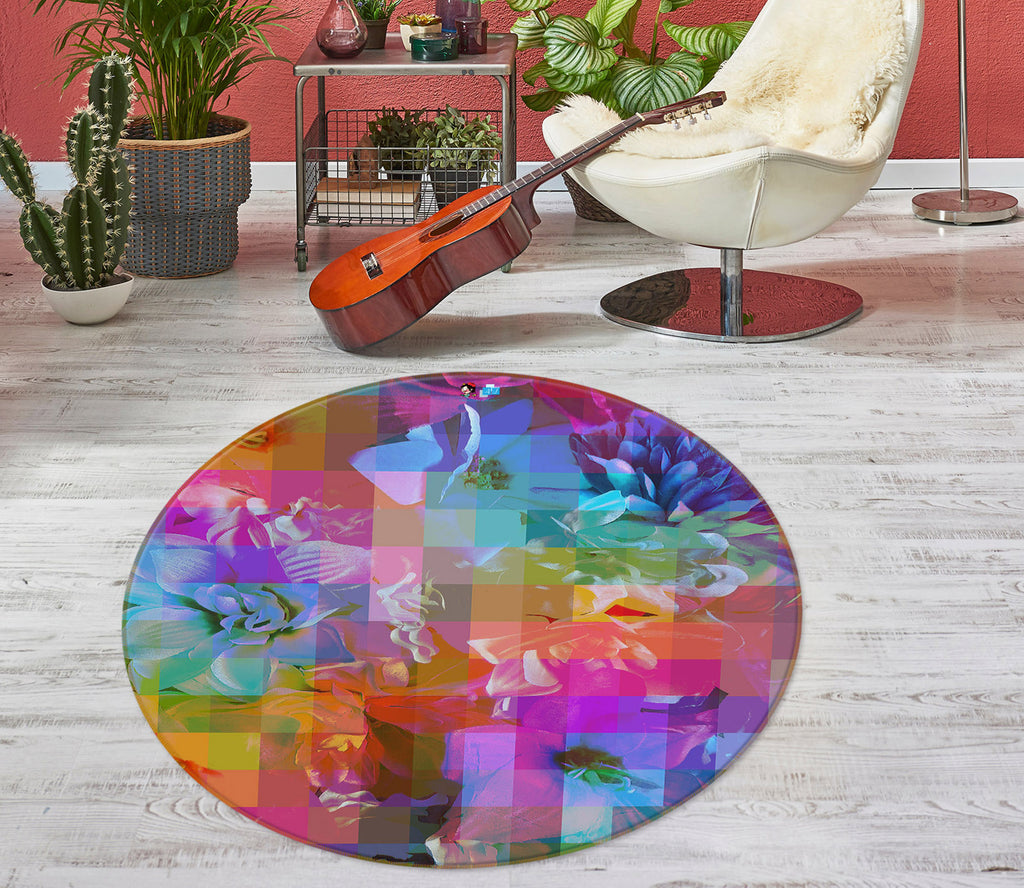3D Color Mosaic Flower 191104 Shandra Smith Rug Round Non Slip Rug Mat Sinsin