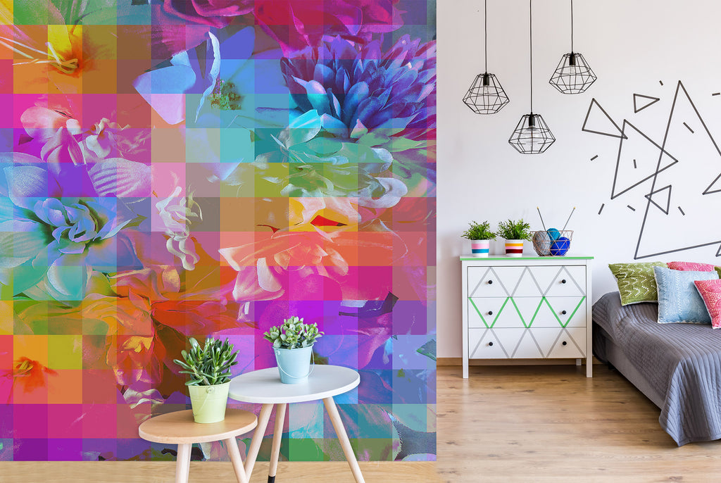 3D Color Mosaic Flowers 19113 Shandra Smith Wall Mural Wall Murals Sinsin