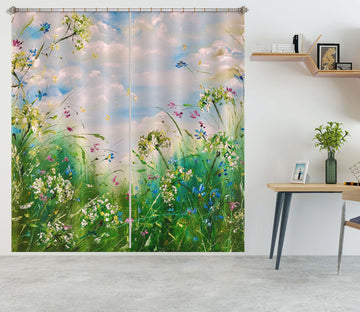 3D Green Grass Flower 2361 Skromova Marina Curtain Curtains Drapes