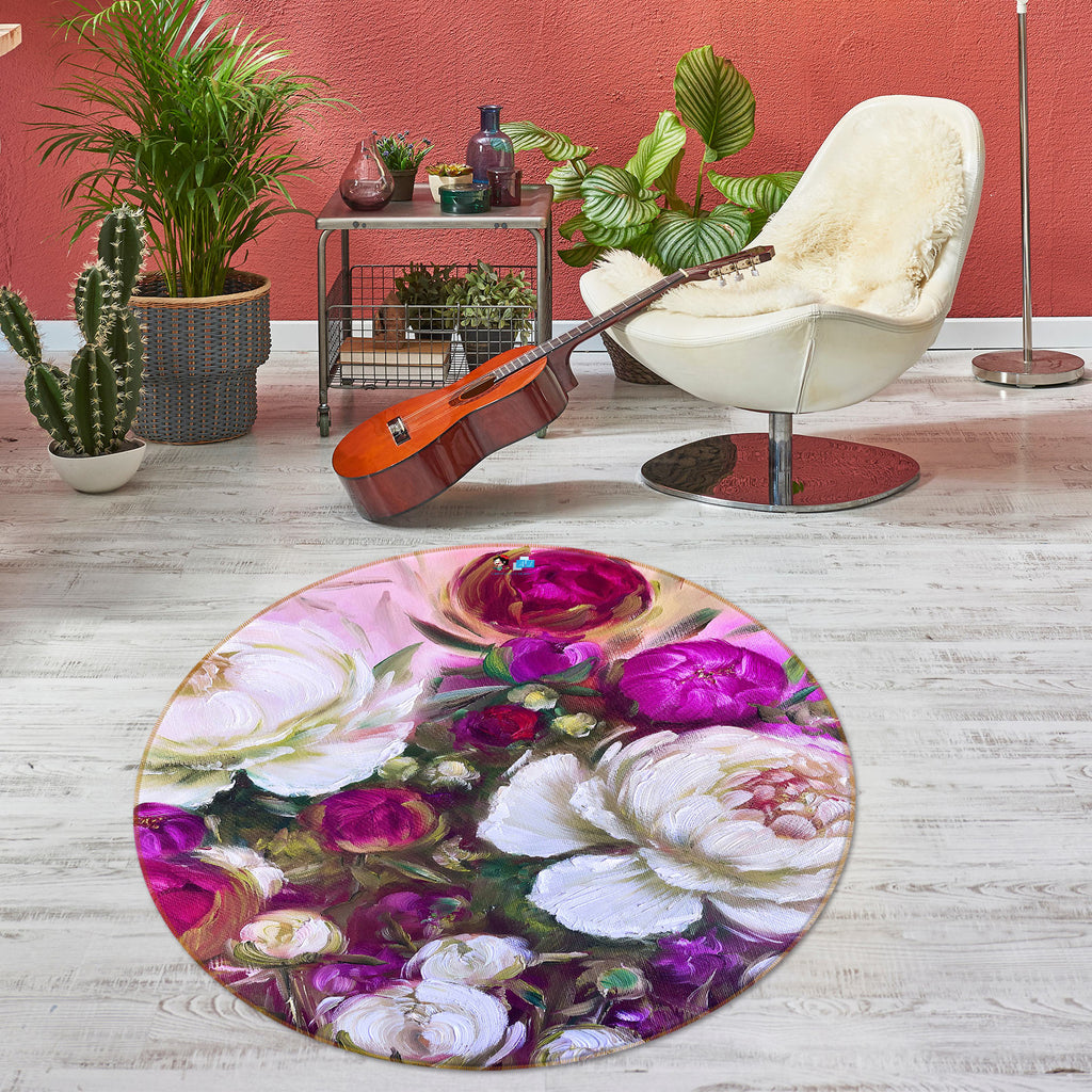 3D Bright Flowers 729 Skromova Marina Rug Round Non Slip Rug Mat Amy