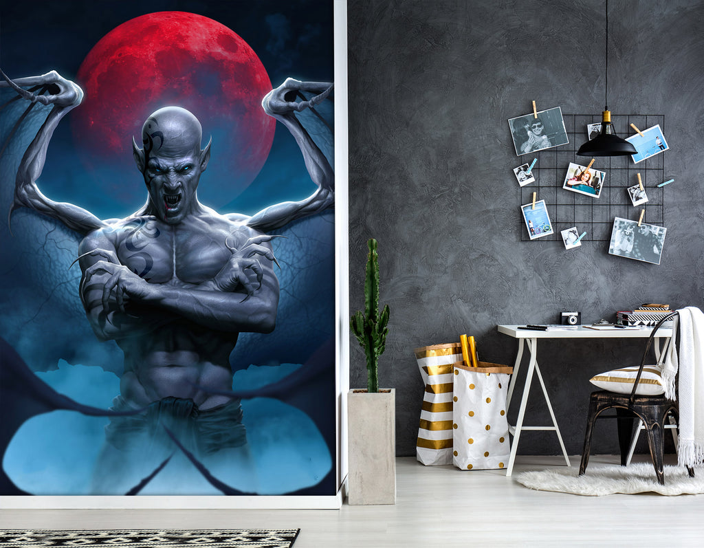 3D Red Moon Dragon Man 5021 Tom Wood Wall Mural Wall Murals Sinsin