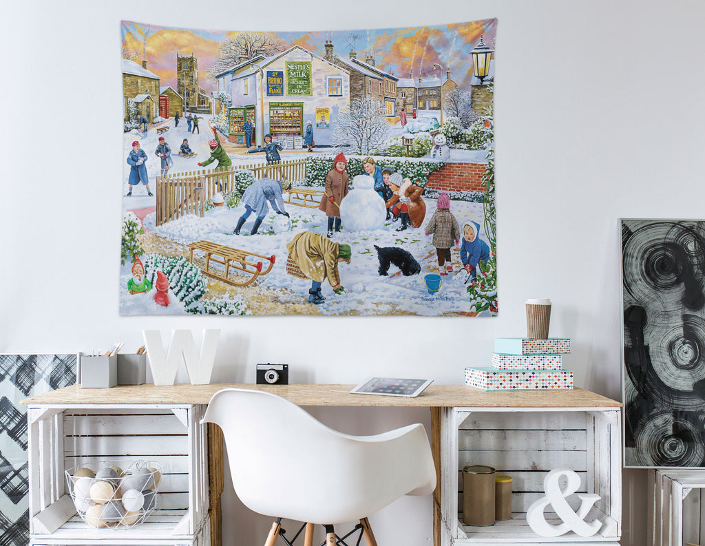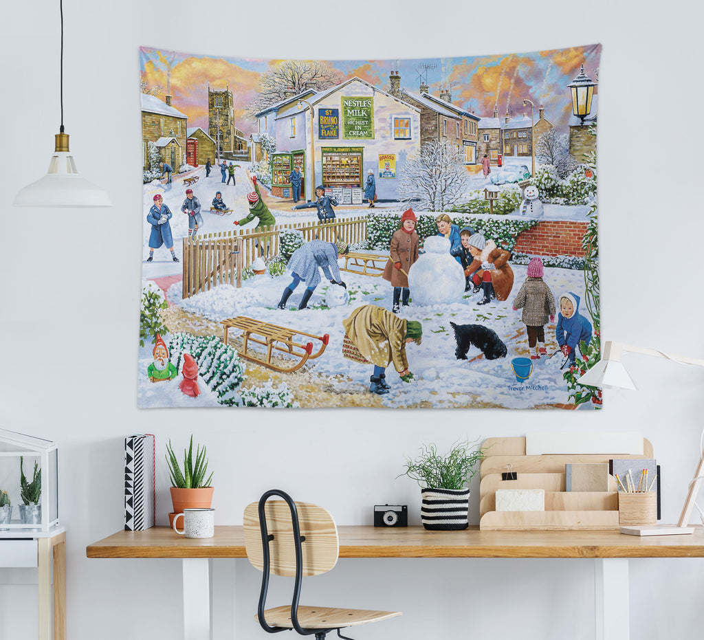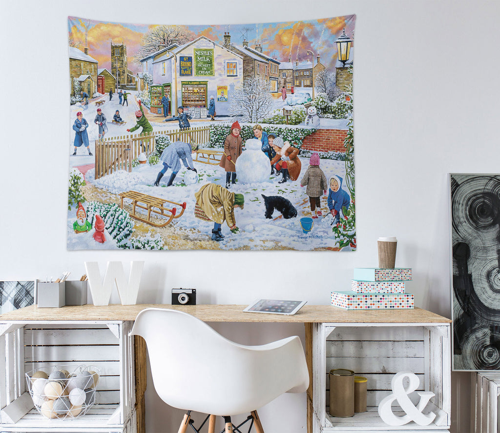 3D Snowman Playing Child 112107 Trevor Mitchell Tapestry Hanging Cloth Hang Sinsin