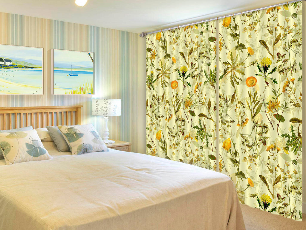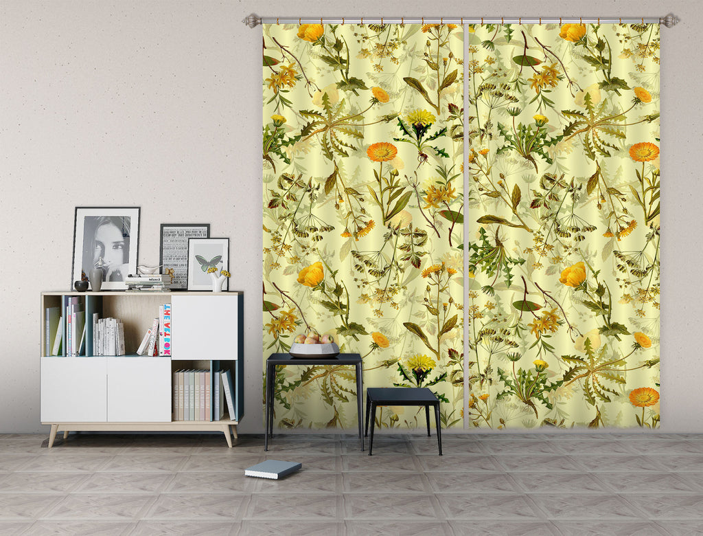3D Chrysanthemum Leaves 254 Uta Naumann Curtain Curtains Drapes