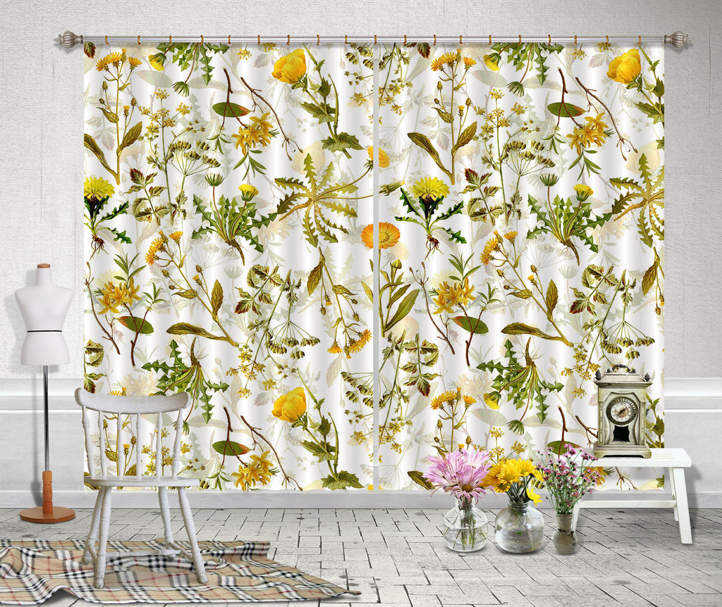 3D Yellow chrysanthemum 253 Uta Naumann Curtain Curtains Drapes