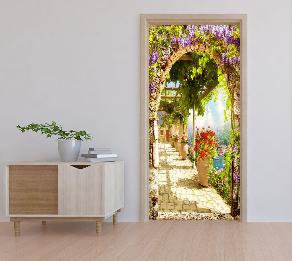3D Corridor Of Flowers 22105 Door Mural Sinsin