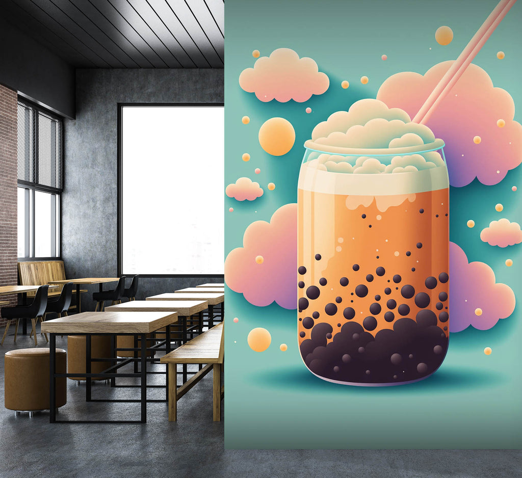 3D Pearl Tea 2114 Fruit Bubble Tea Milk Tea Shop Wall Murals Amy