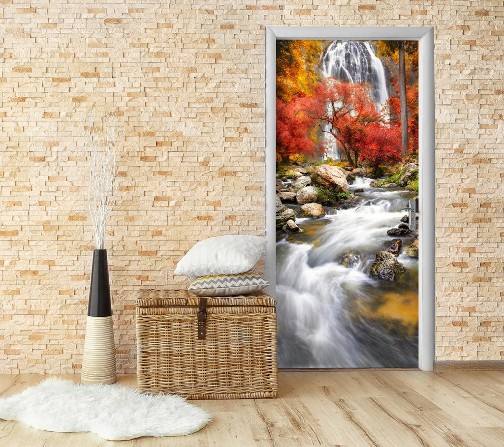 3D Red Tree Waterfall 134 Door Mural Zoe