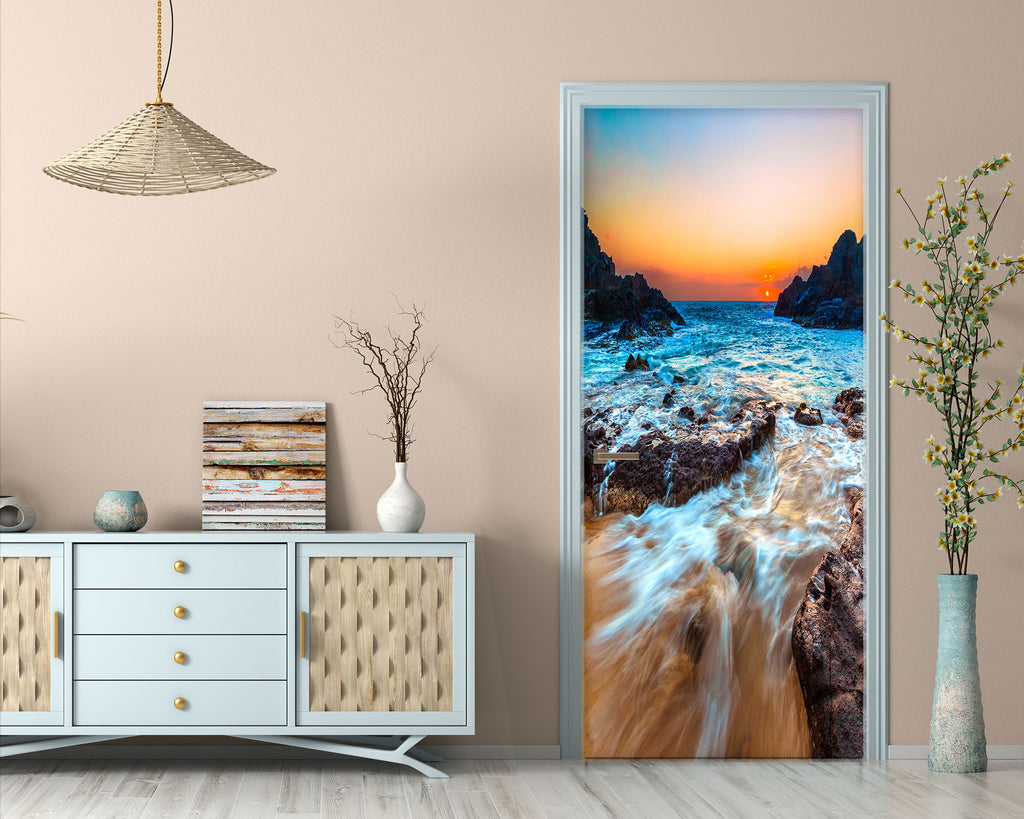 3D Sunset Stone Sea 069 Door Mural Zoe
