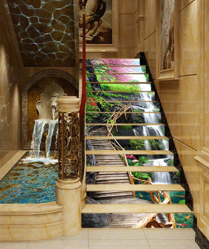 3D Waterfall Wooden Stairs 1155 Stair Risers