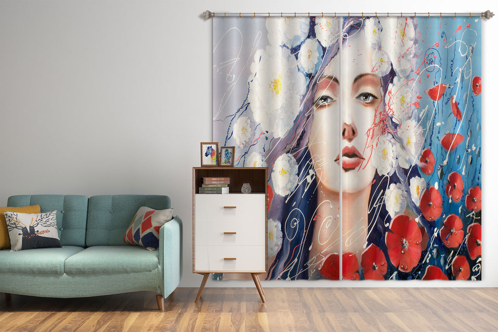 3D White Flower Girl 024 Curtains Drapes Zoe