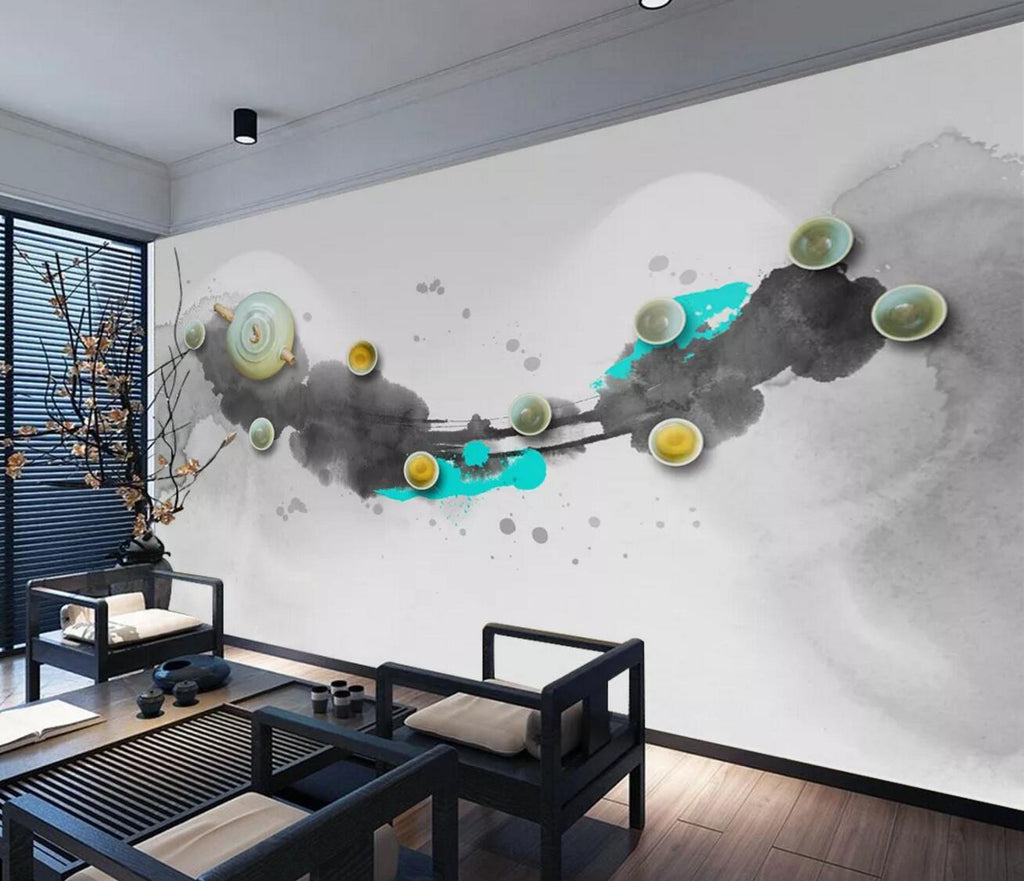 3D Green Teapot Teacup WC543 Wall Murals Zoe