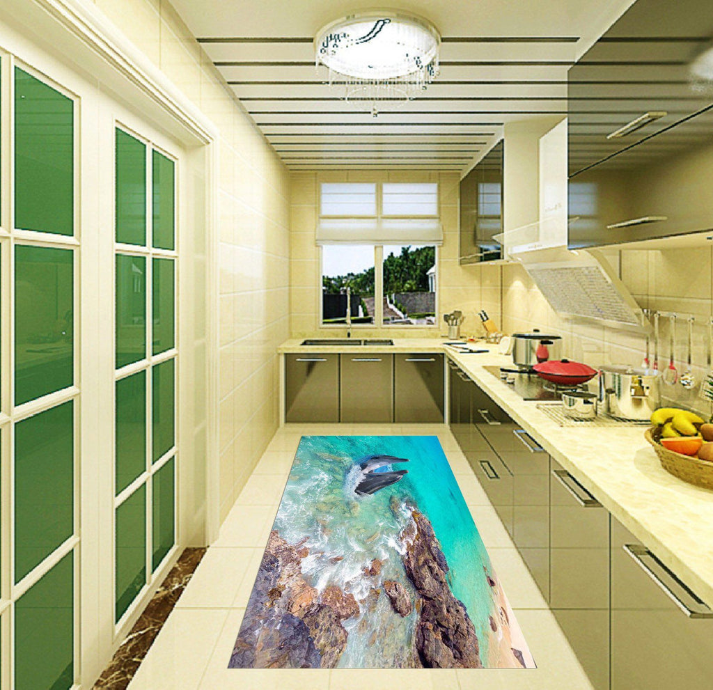 3D Seaside Dolphins 023 Kitchen Mat Floor Mural