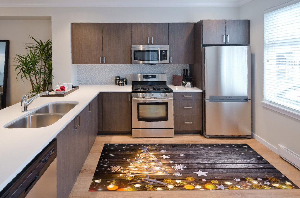 3D Wood Christmas Tree Kitchen Mat Floor Mural