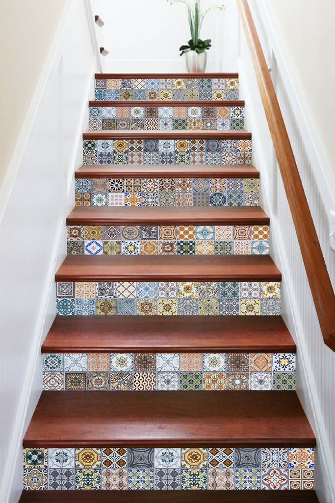 3D Vintage Handmade Mosaic 558 Marble Tile Texture Stair Risers