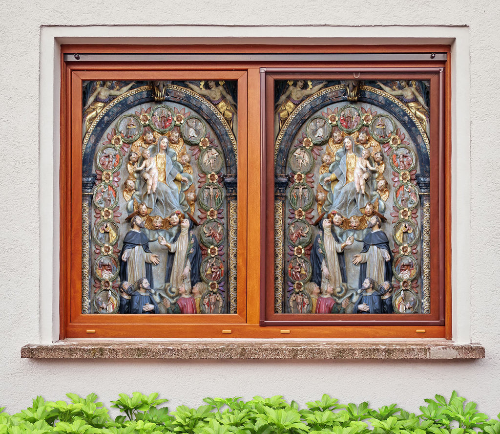 3D Carving Mother Baby 002 Window Film Print Sticker Cling Stained Glass UV Block