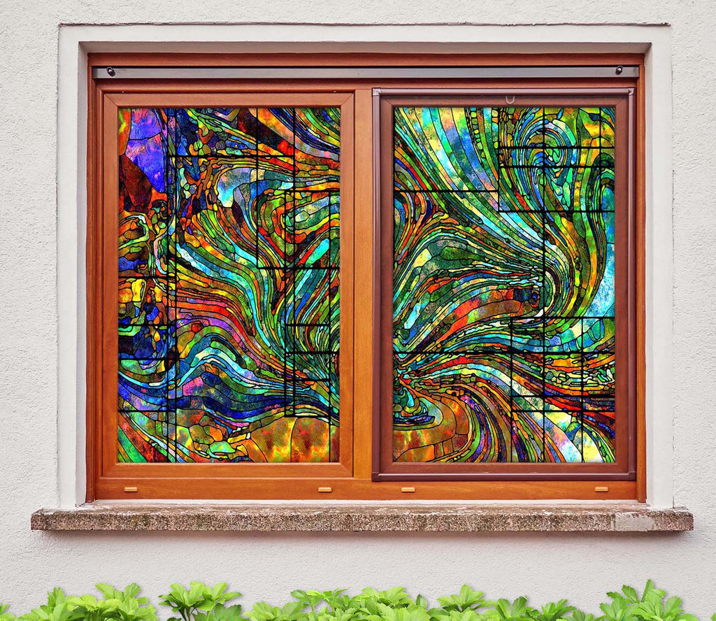 3D Green Turbulence 043 Window Film Print Sticker Cling Stained Glass UV Block