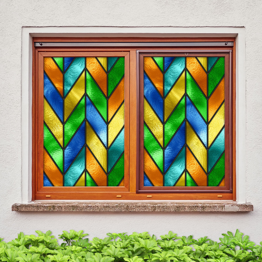 3D Green Wave 115 Window Film Print Sticker Cling Stained Glass UV Block