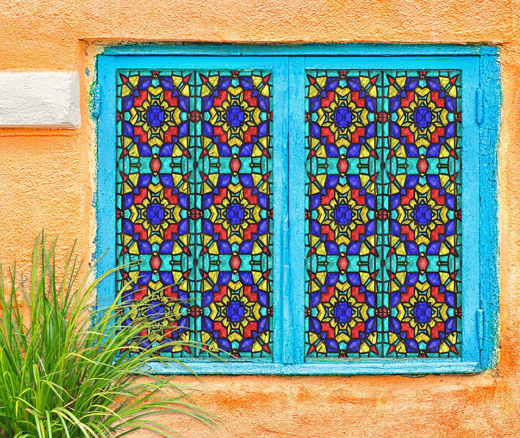 3D Lace Blue 118 Window Film Print Sticker Cling Stained Glass UV Block