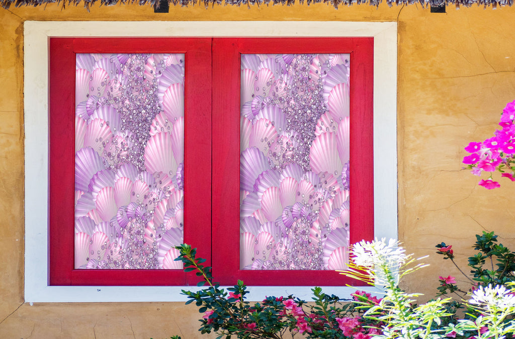 3D Purple Seashell 101 Window Film Print Sticker Cling Stained Glass UV Block
