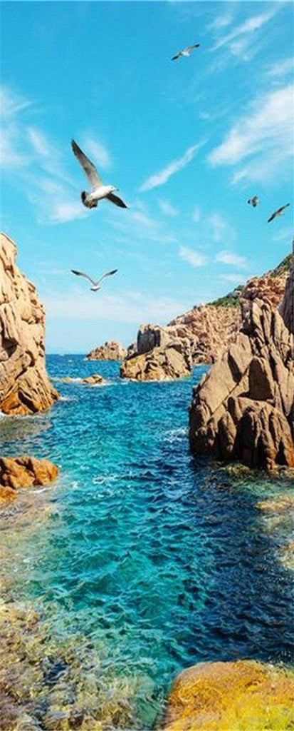 3D  water and seagulls sea door mural