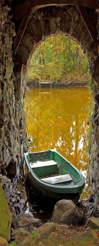 3D lake docked boat door mural