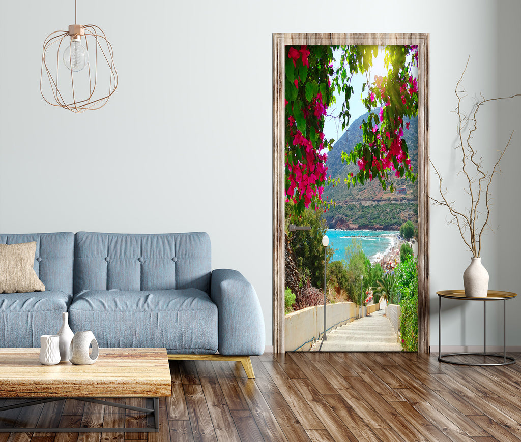 3D Mountain Flower Bush 22137 Door Mural Sinsin