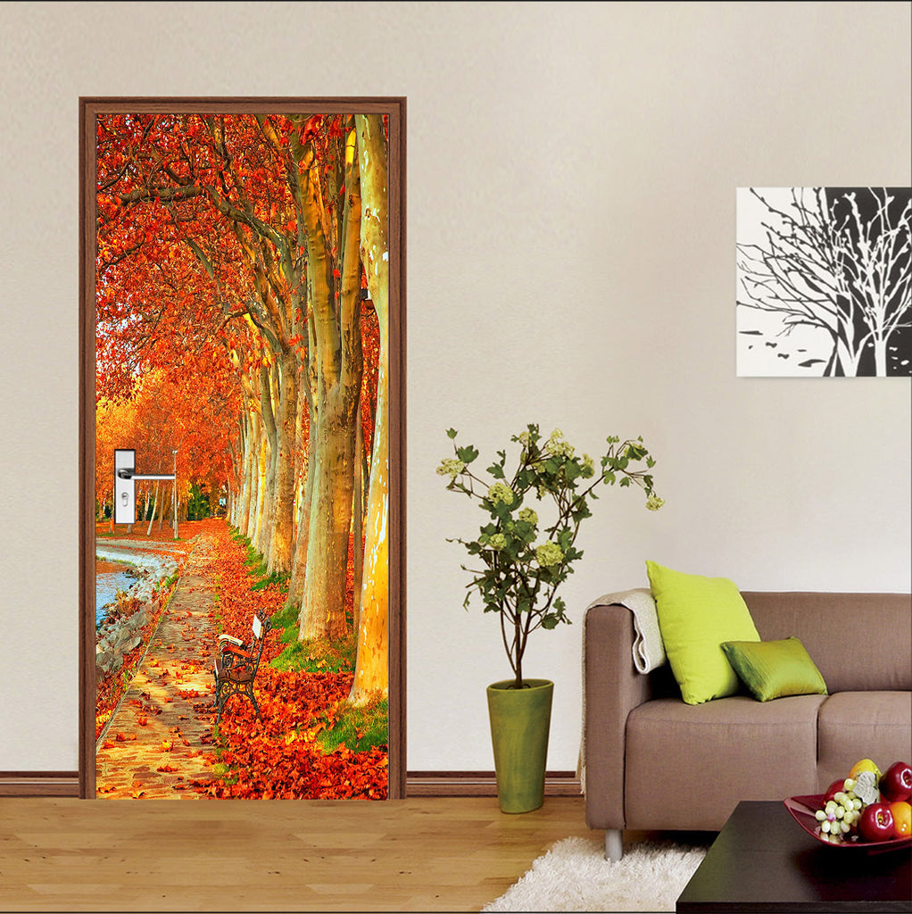 3D Red Leaf Tree 25091 Door Mural Sinsin