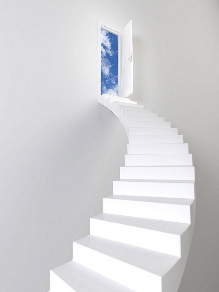 3D stairway to the window of the sky door mural