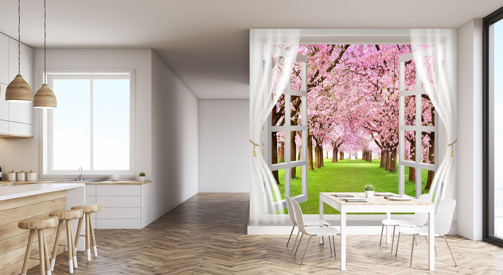 3D Window Cherry Forest 131 Wall Murals