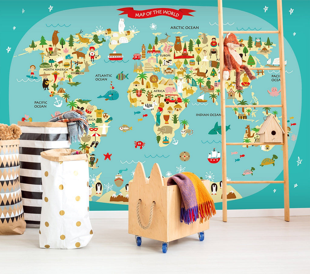 3D Cartoon Animal Map 039 Wall Murals Zoe