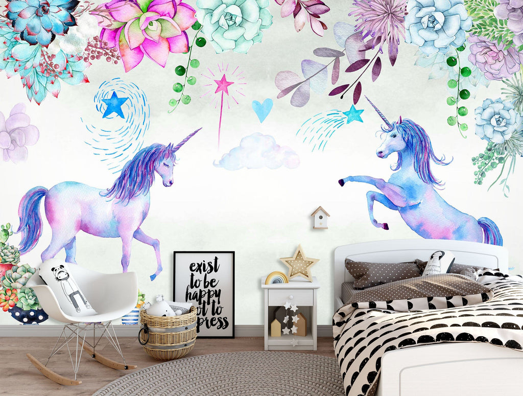 3D Unicorn Flowers 1428 Wall Murals