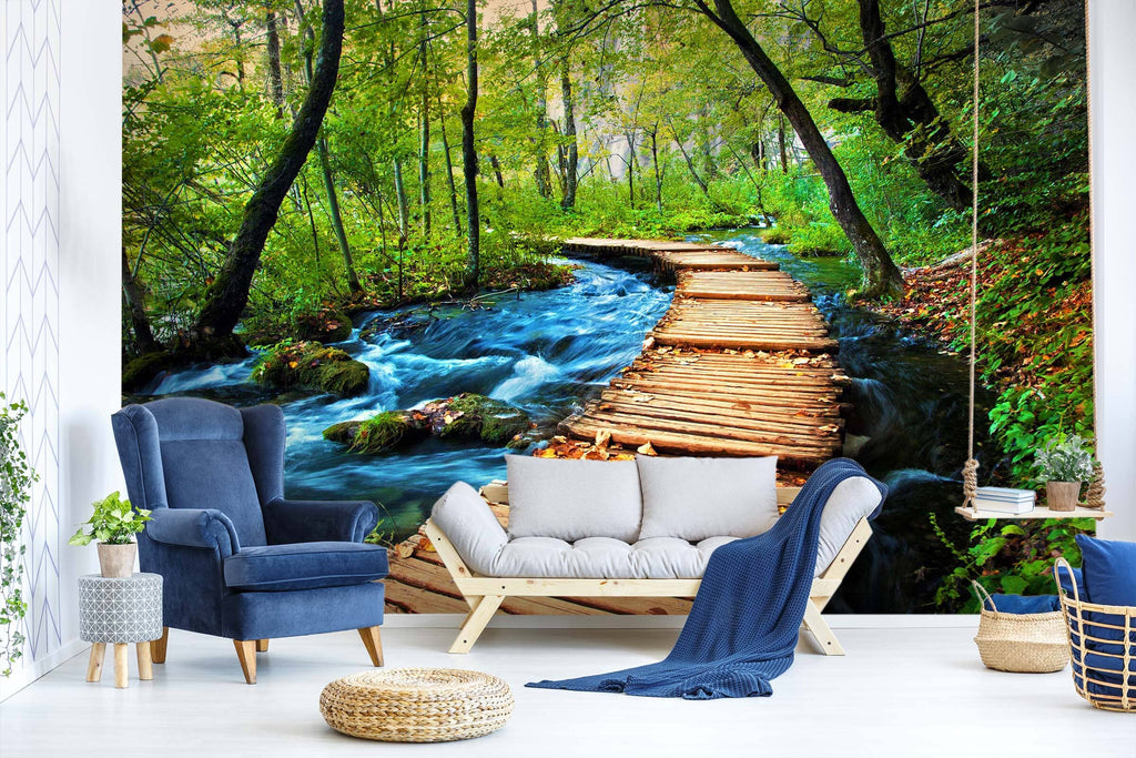 3D Waterfall Wooden Bridge 13 Wall Murals Zoe