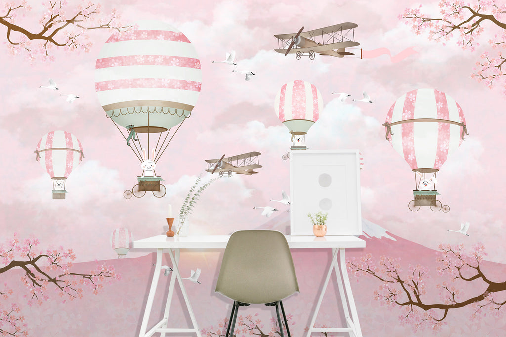 3D Pink Hot Air Balloon 1046 Wall Murals