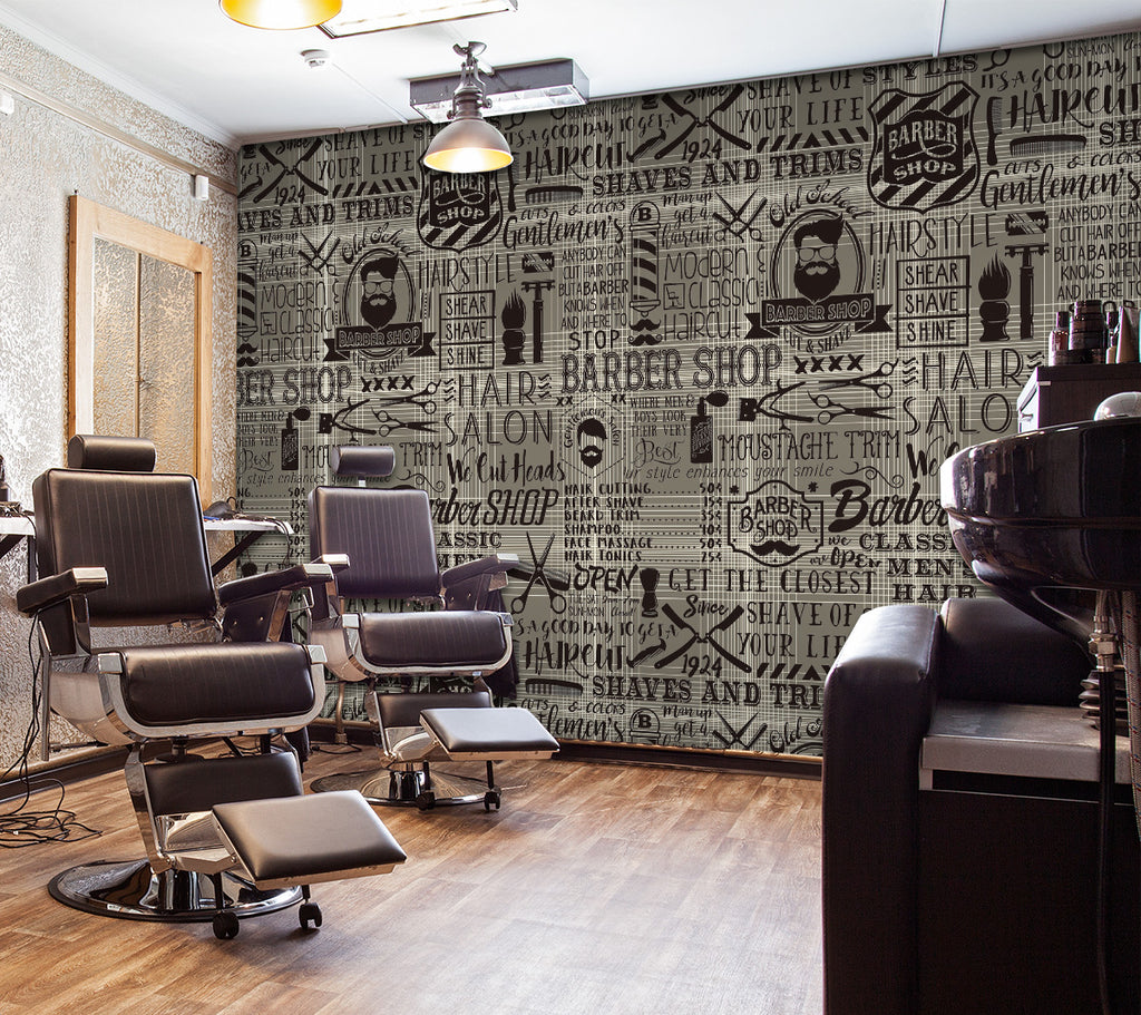 3D Black Gray Haircut Letter Pattern 115149 Barber Shop Wall Murals Sinsin