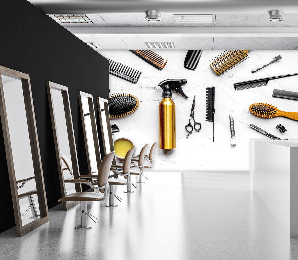3D Comb Spray Scissors 115153 Barber Shop Wall Murals Sinsin
