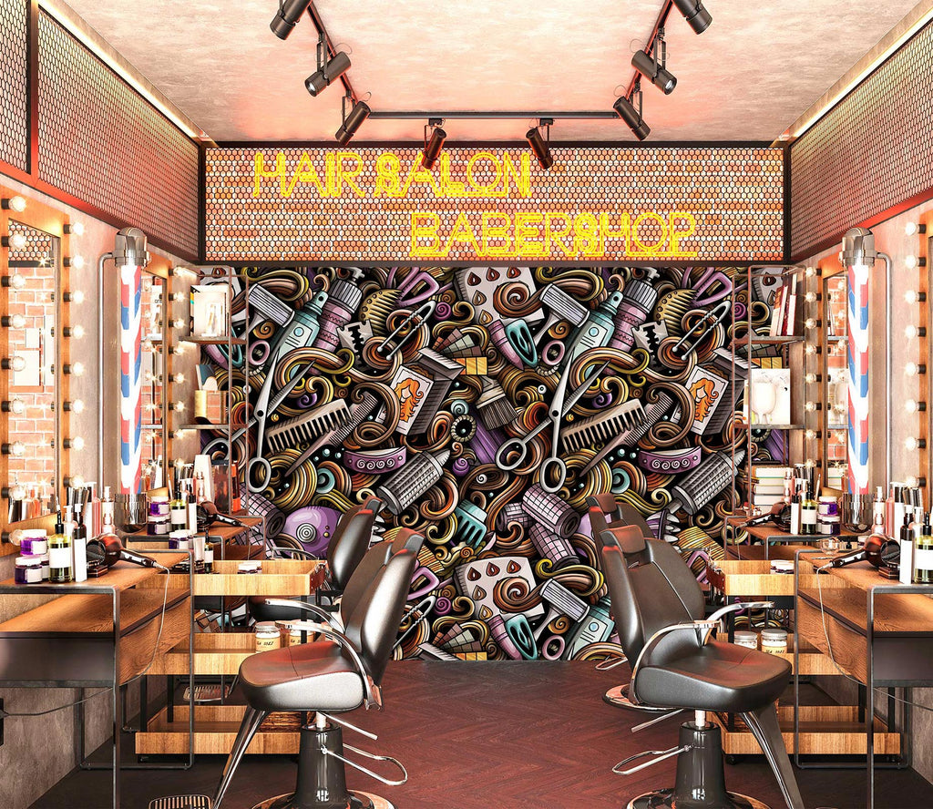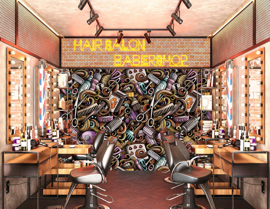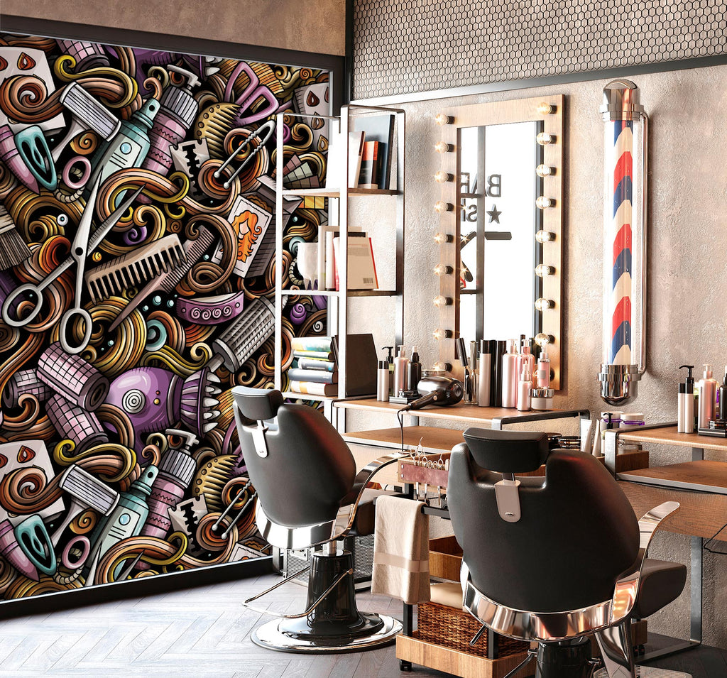 3D Scissors Comb Curling Roller 115185 Barber Shop Wall Murals Sinsin
