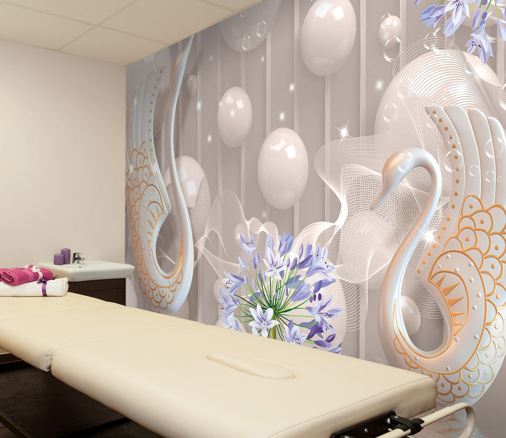 3D Swan Vase 097 Wall Murals