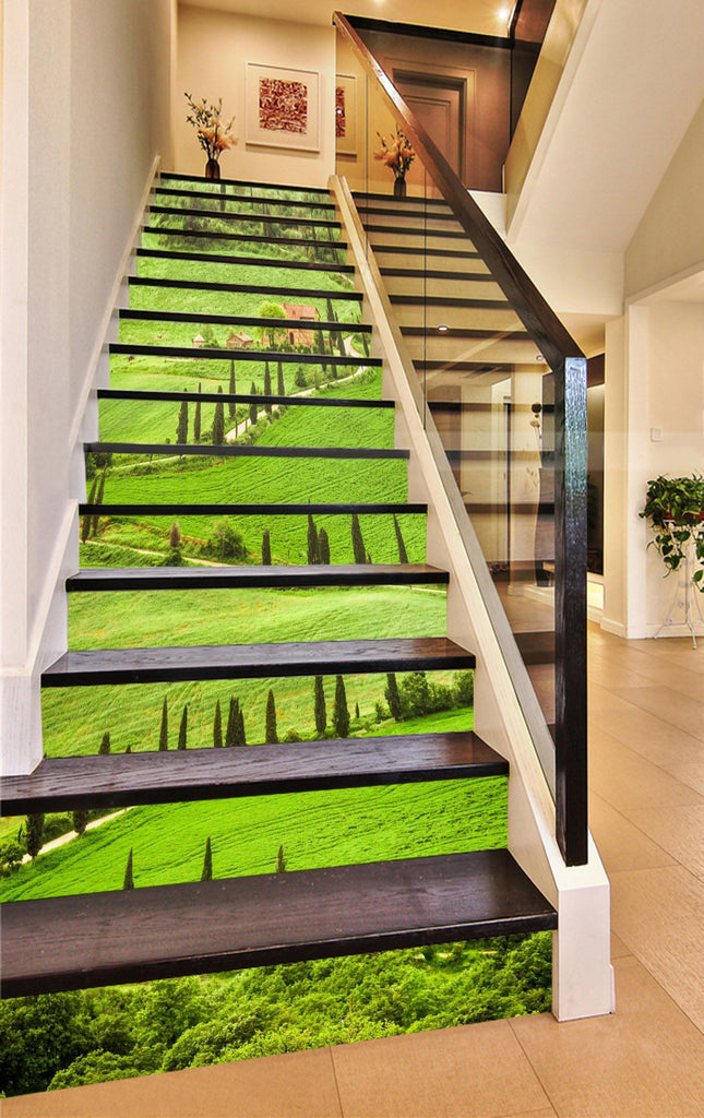 3D Green Grassland 742 Stair Risers