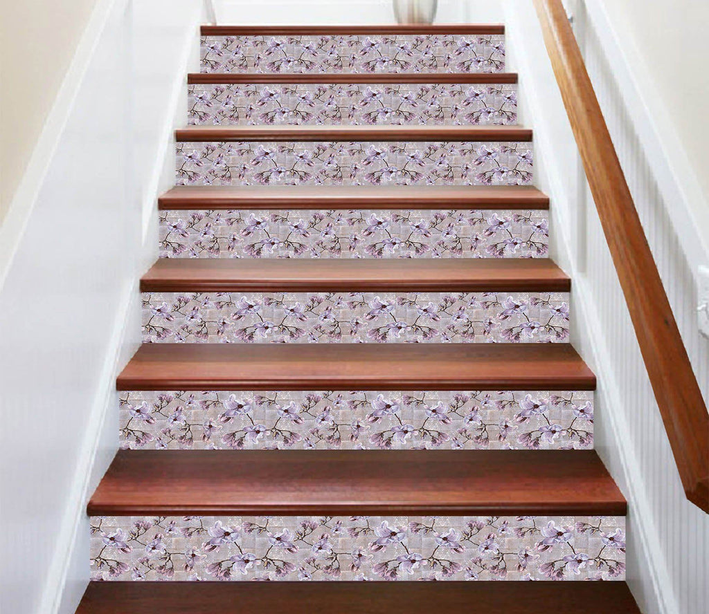 3D Idyllic Purple Flower 0595 Marble Tile Texture Stair Risers